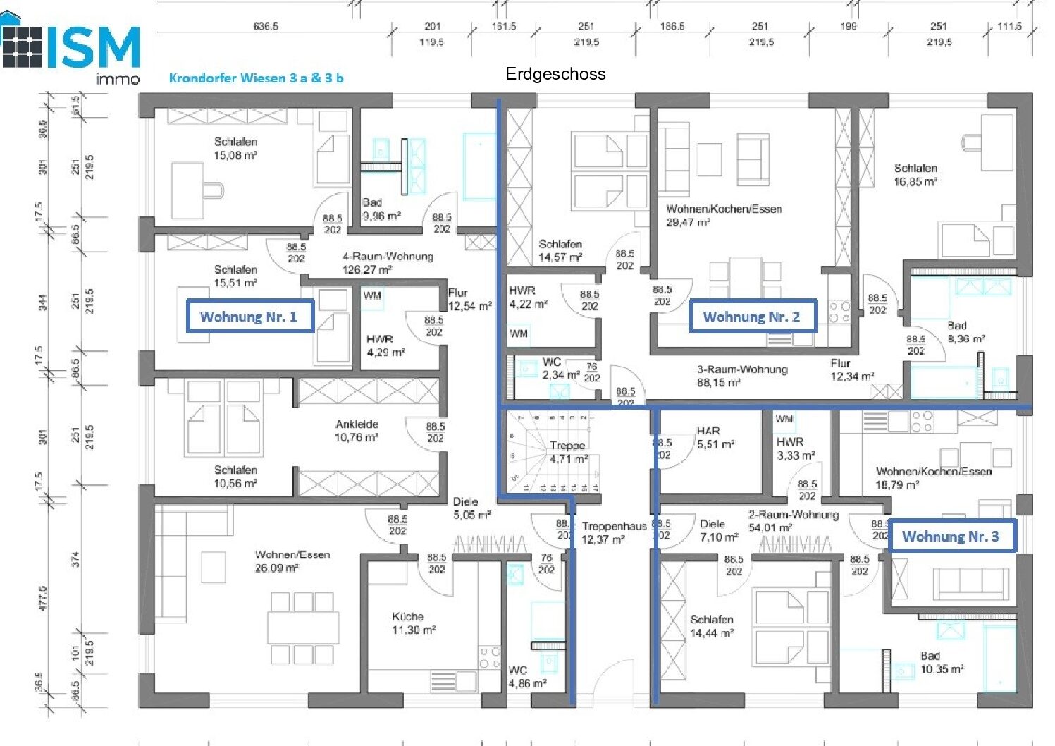 Auf dem Gelände der ehemaligen Kaserne in Wolfen-Krondorf entstehen zwei Mehrfamilienhäuser mit 14 zeitgemäßen Mietwohnungen, die durch innovative Energieeinsparlösungen einen niedrigen Energieverbrauch für Ihre zukünftigen Mieter bieten. Rund um die Mehrfamilienhäuser herum entstehen großflächige Grünanlagen, die zum Wohnen und Wohlfühlen mitten in der Natur einladen. Die Mietwohnungen lassen keine Wünsche offen – Zur Ausstattung gehören neben großen Fenstern mit 3-fach-Verglasung auch ein Balkon bzw. eine Terrasse, Fußbodenheizung und bis zu zwei PKW-Stellplätze.
